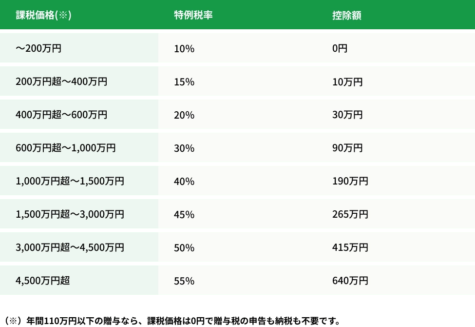 2. 特例贈与税率(要件を満たす場合)