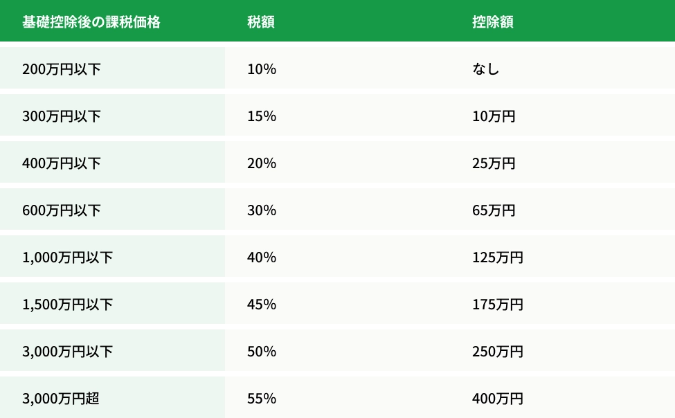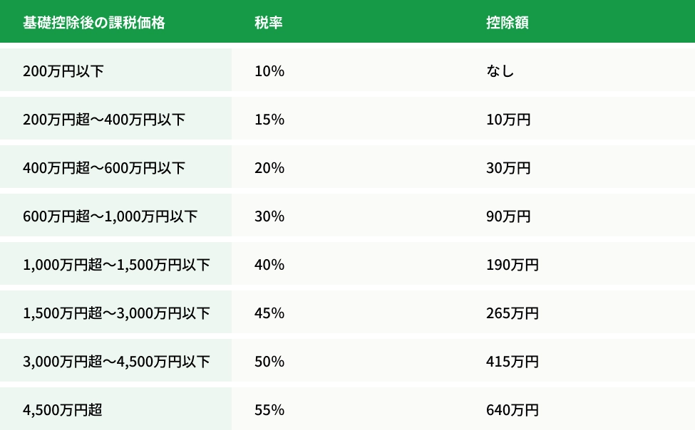年間110万円までの贈与は非課税ですが、それを超える部分には贈与税がかかります。贈与税の税率は贈与額によって異なります。