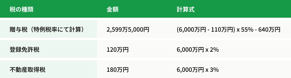 6,000万円の土地を親子間で贈与・相続した場合の税金を比較してみましょう。